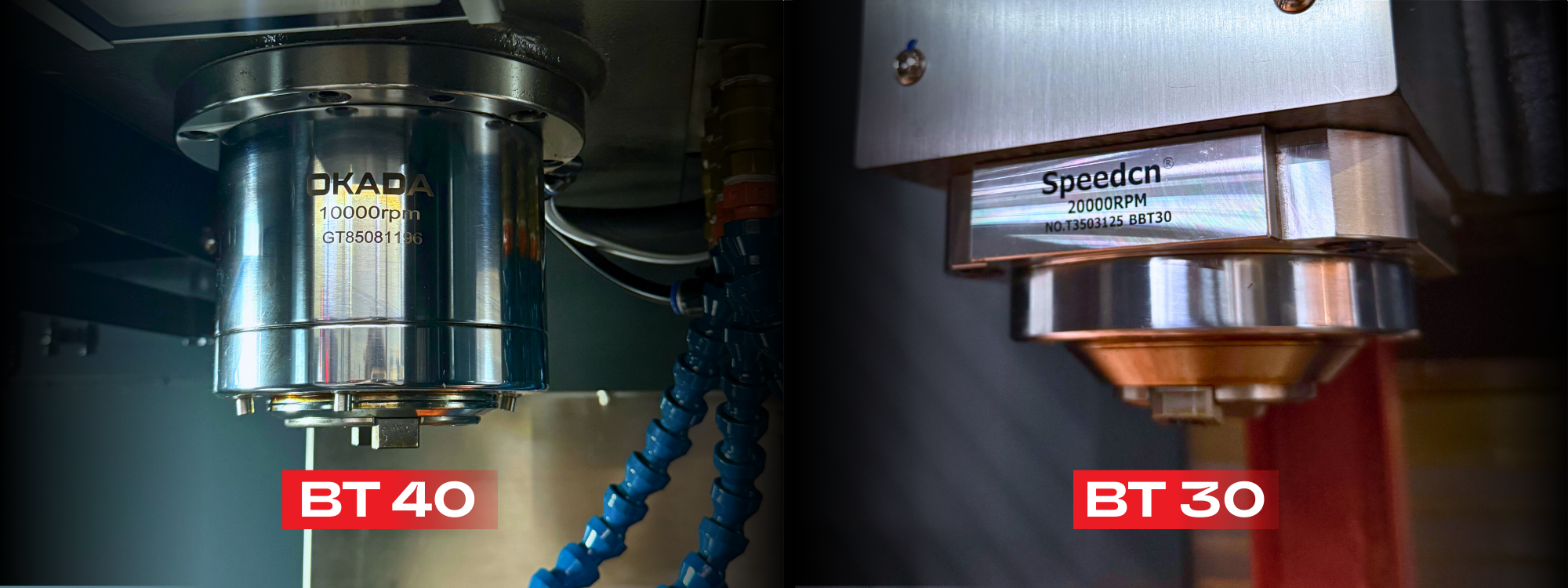 - Se você faz mais furo/rosca, usa ferramenta pequena e necessita de alta rotação → BT30